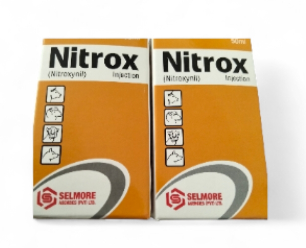 نائیٹروکس انجکشن گائے، بھیڑ ، بکری، اونٹ میں فیلمی لومیر (بالغ اور نورانیہ ب) جولی ہیولا ہیٹر کا اور فیشیو لا جائی ہیکہ کا کی وجہ سے ہو ، معدے دانتوں کے گول کرموں کا حملہ جو ہیمونکس کی اقسام، بولو سٹوم اور او سولیکو سلام کی اقسام، ایٹرس کی اقسام کی وجہ سے ہو اور کتوں میں این سائیلو سٹو ما اور ان سیریا کی اقسام کے حملے کی روک تھام کے لئے تجویز کیا جاتا ہے۔